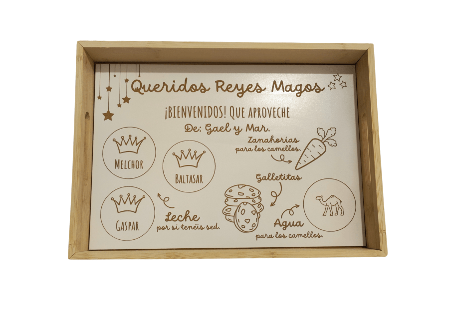 ¿Qué tal si dejamos algo rico a los reyes magos para que repongan fuerzas en su dura noche de trabajo? Pues tenemos el complemento perfecto, esta bandeja para dejarles todo en ella.