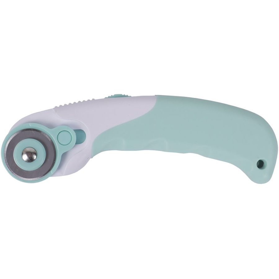 Cutter con cuchilla giratoria de 28mm y botón de bloqueo.