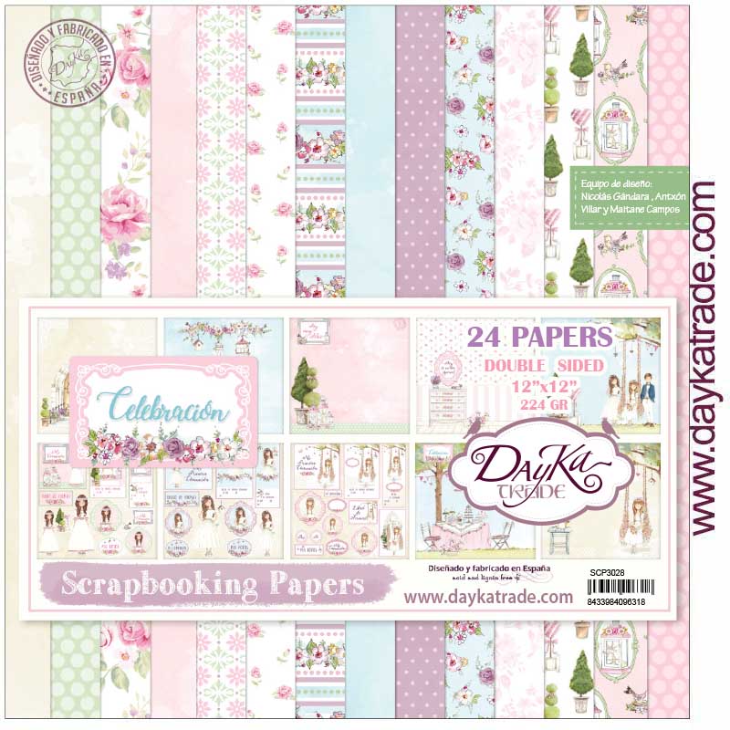Kit papeles scrapbooking. Celebración comunión niña. Dayka Trade.