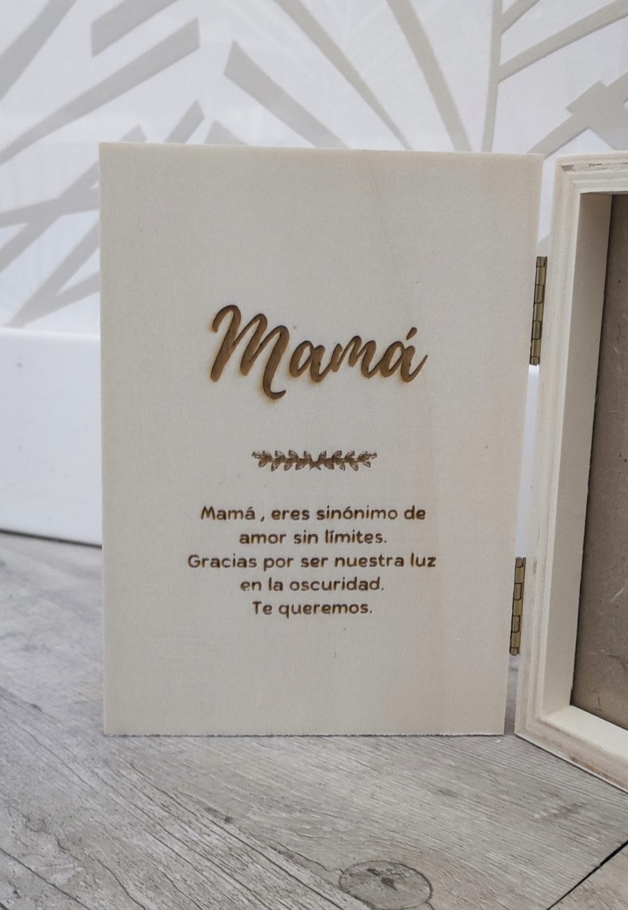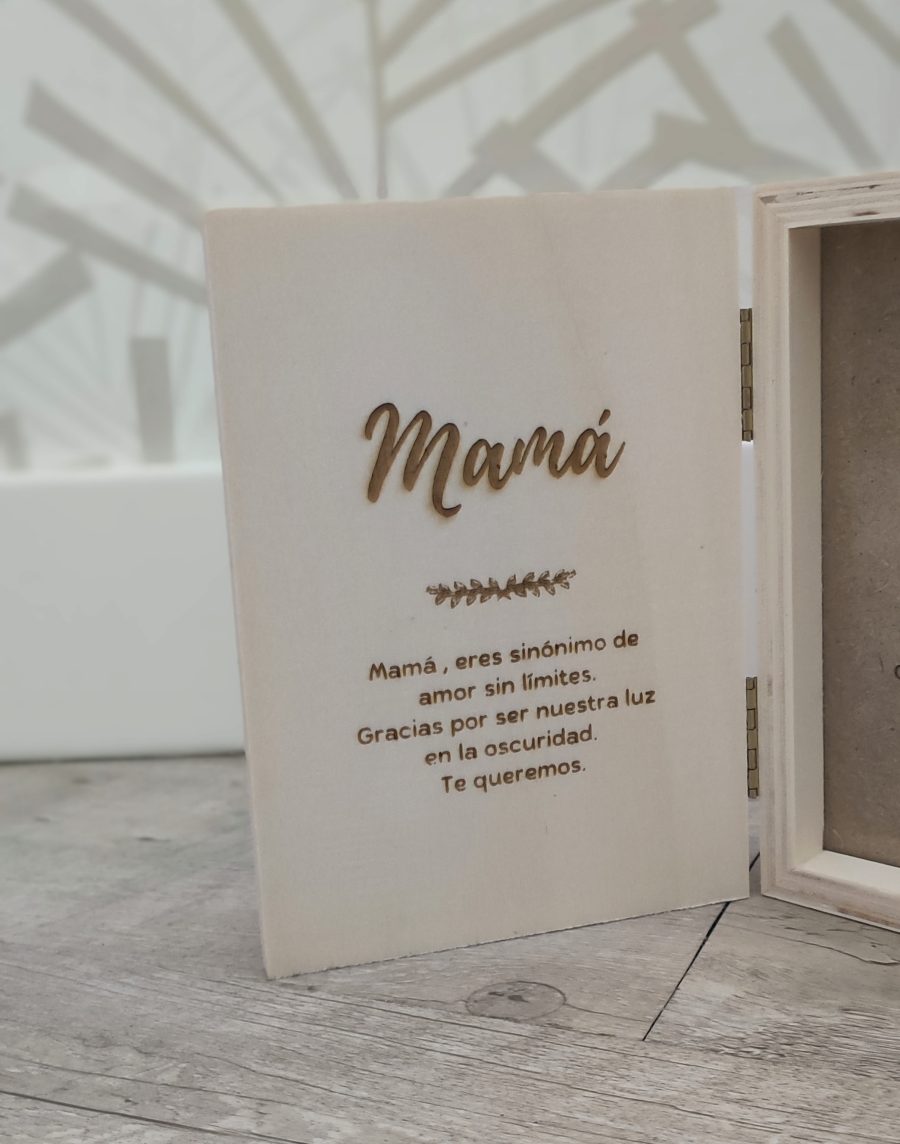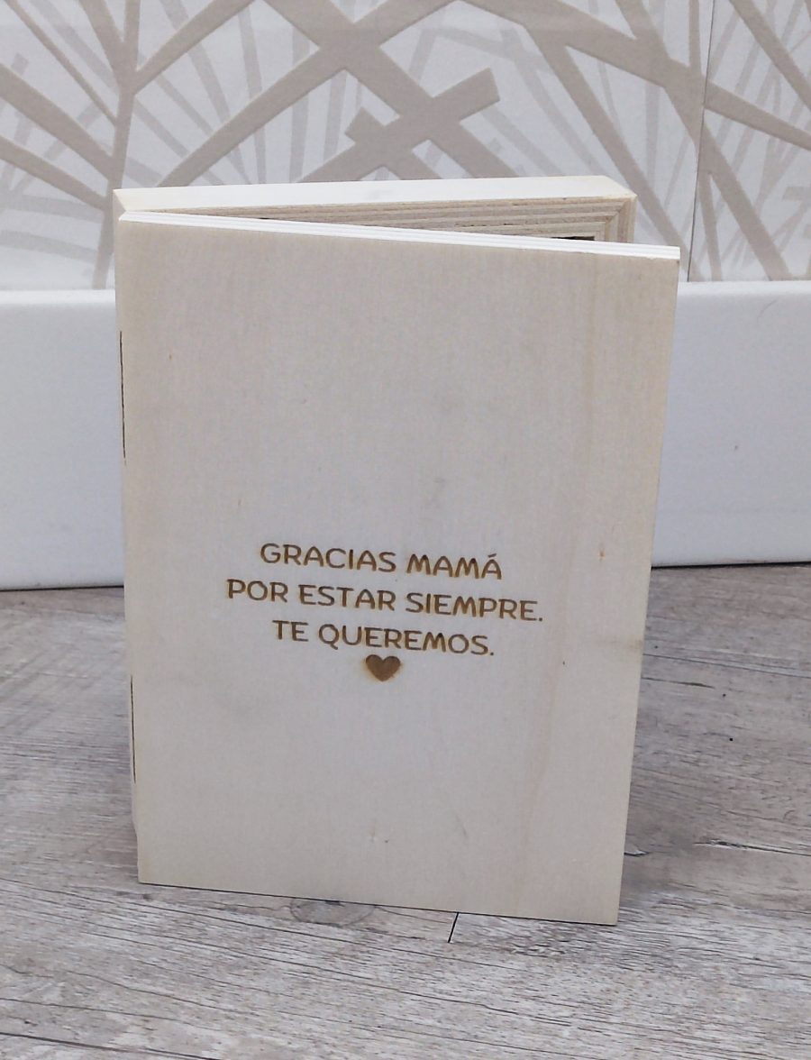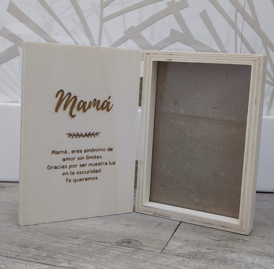 Marco tipo libro con tapa de madera. Personalizado.