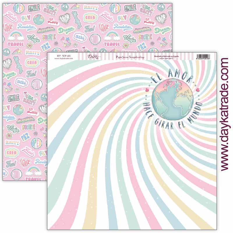 Papel scrapbooking. Be happy. El amor hace girar el mundo.