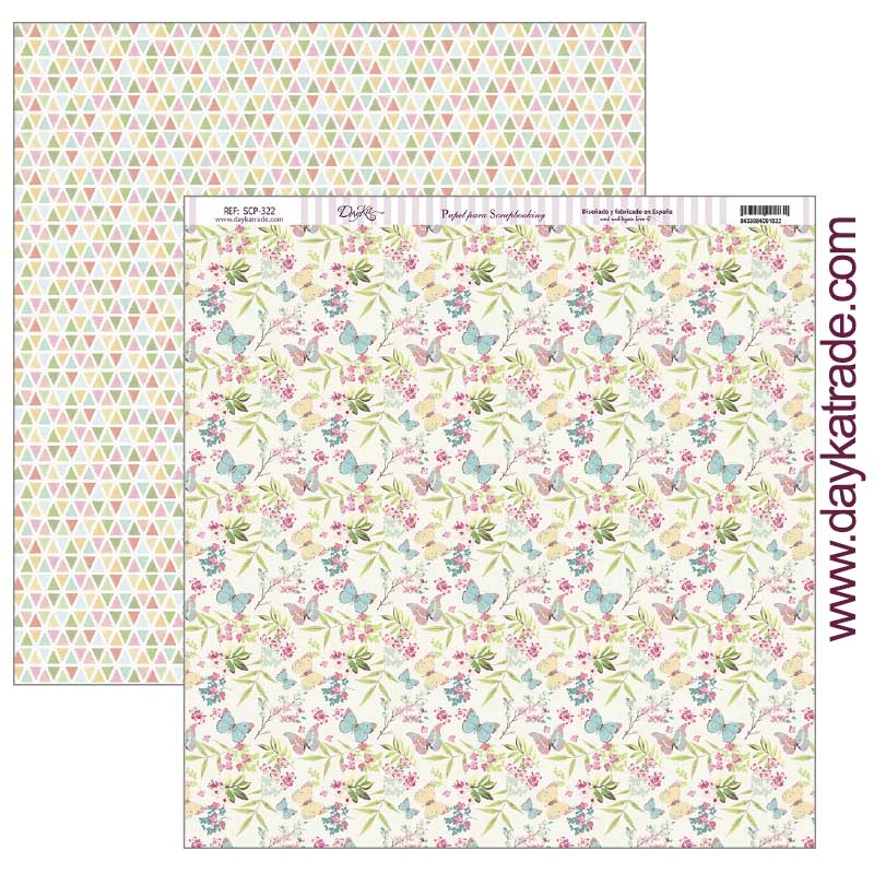 Papel scrapbooking. Mariposas y flores. Dayka.