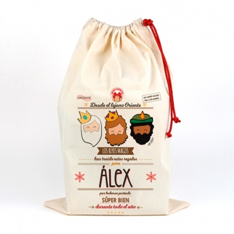 Saco navideño para regalos. Personalizado. Reyes magos.