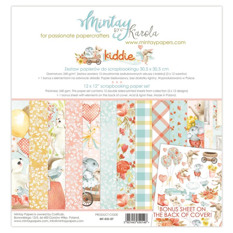 4. Set Papel Scrapbooking. Kiddie. Mintay by Karola.