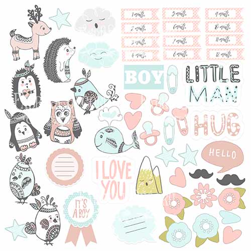 Set Papel Scrapbooking. Scandi baby boy. Fabrika decoru.