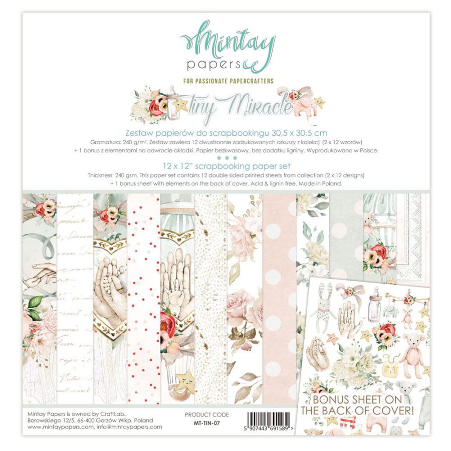 Set Papel Scrapbooking. Tiny Miracle. Mintay by Karola.