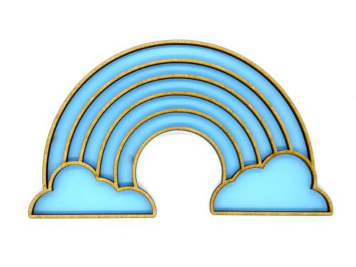 Compuesto por 4 piezas: una base de madera de dm de 3mm de grosor, dos marcos de 3mm de grosor, acetato con protección (es la parte azul que se ve en la foto, se quita).