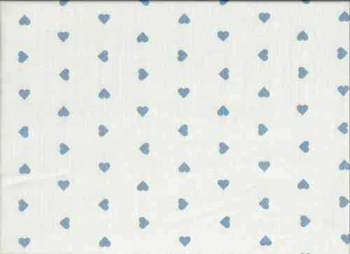 Tela algodón. Patchwork. Fondo blanco corazones azules.
