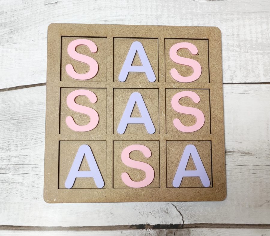 Tres en raya. Iniciales metacrilato.